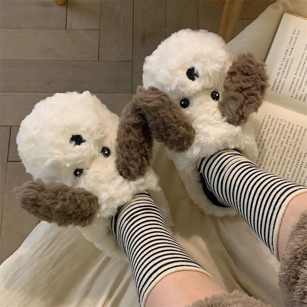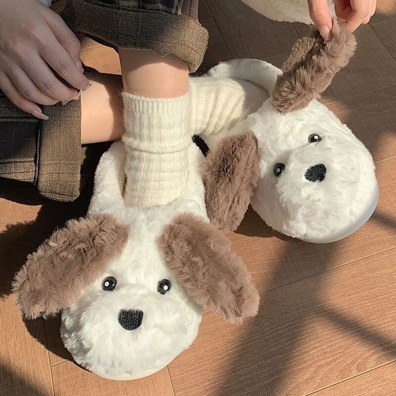 RomieHome 秋冬ルームシューズ わんちゃん もふもふ かわいいスリッパ 部屋用 防寒 温かい スリッパ かわいい rh25110701