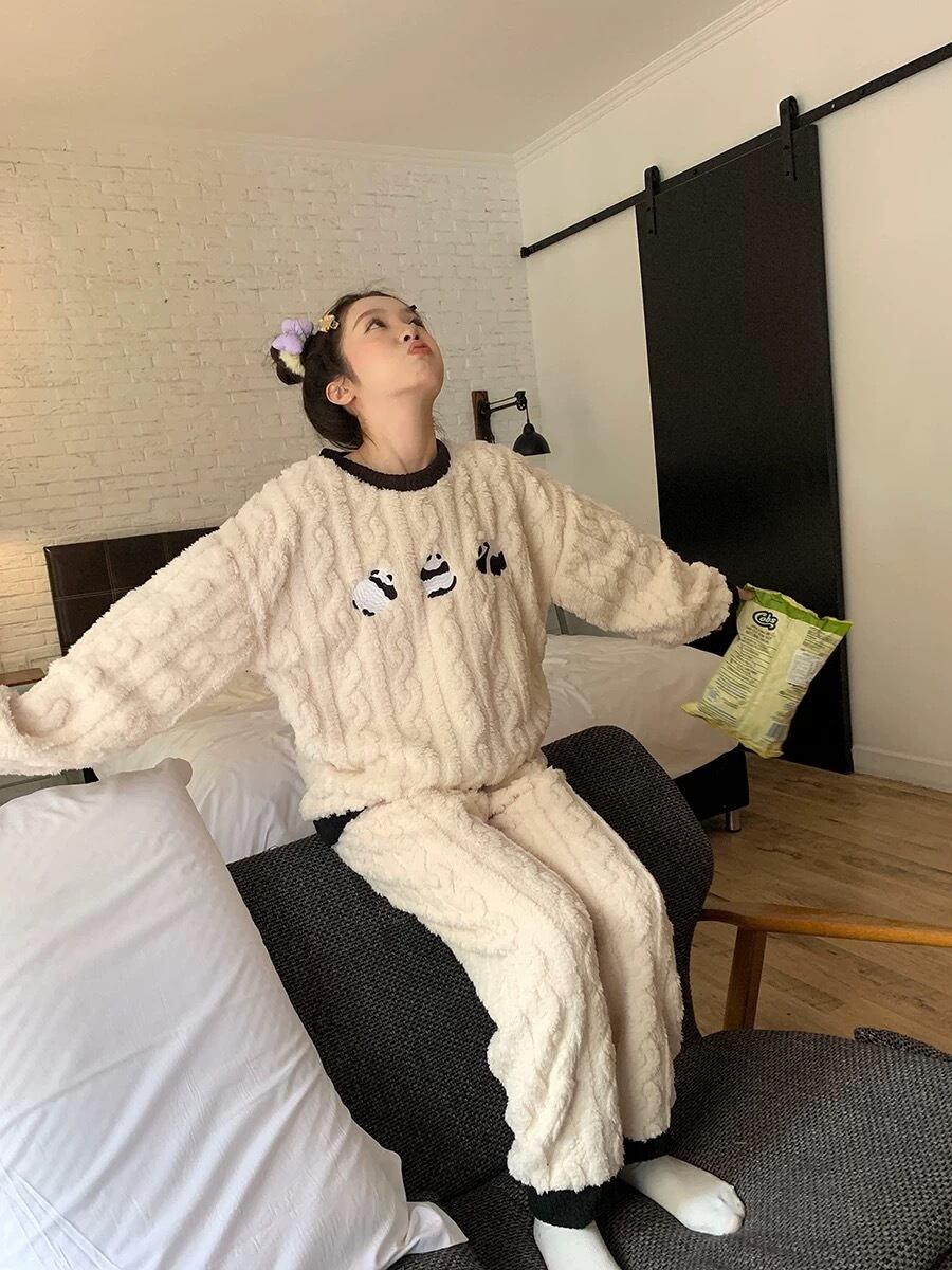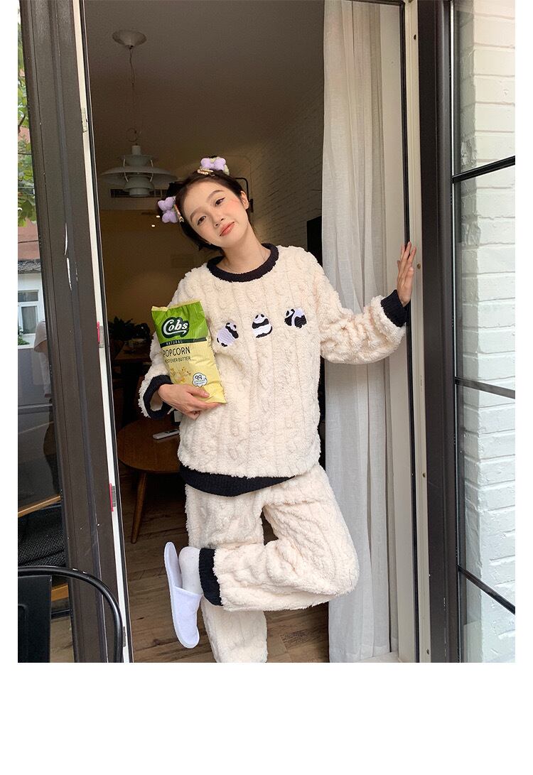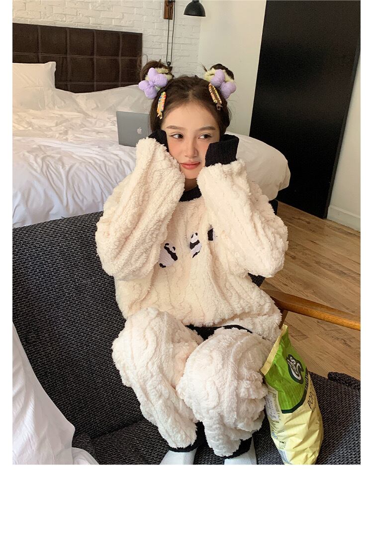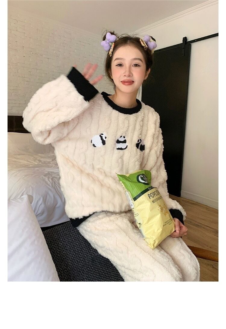 RomieHome 秋冬 モコモコアイボリーパンダルームウェア 上下セットアップ パジャマ かわいい パジャマ セットアップ rh23101102