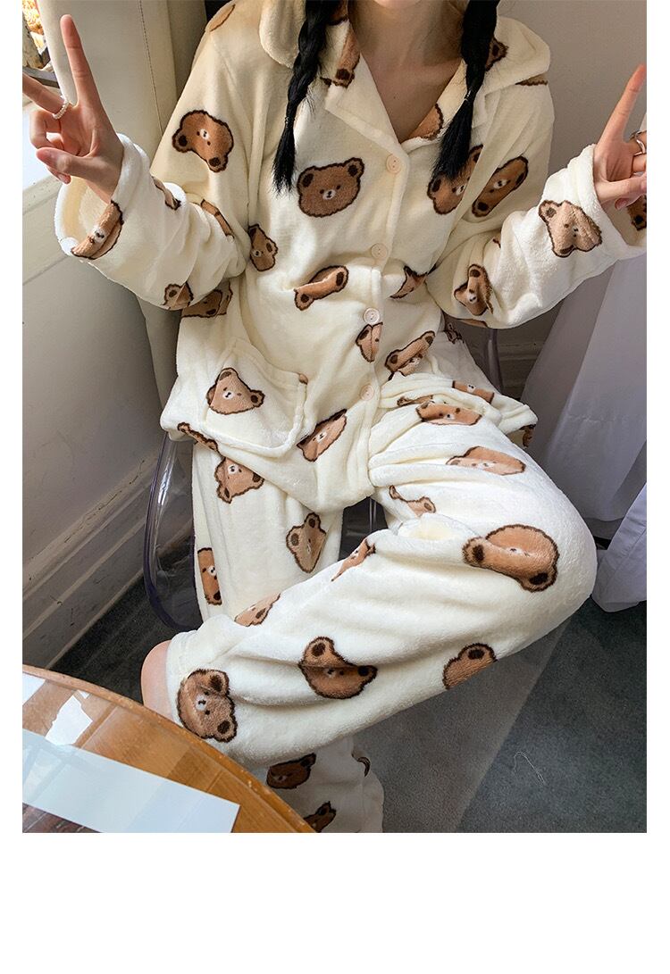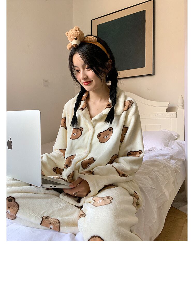 RomieHome 秋冬 くまさんモチーフルームウェア モコモコ上下セットアップ パジャマ かわいい パジャマ セットアップ rh23102402
